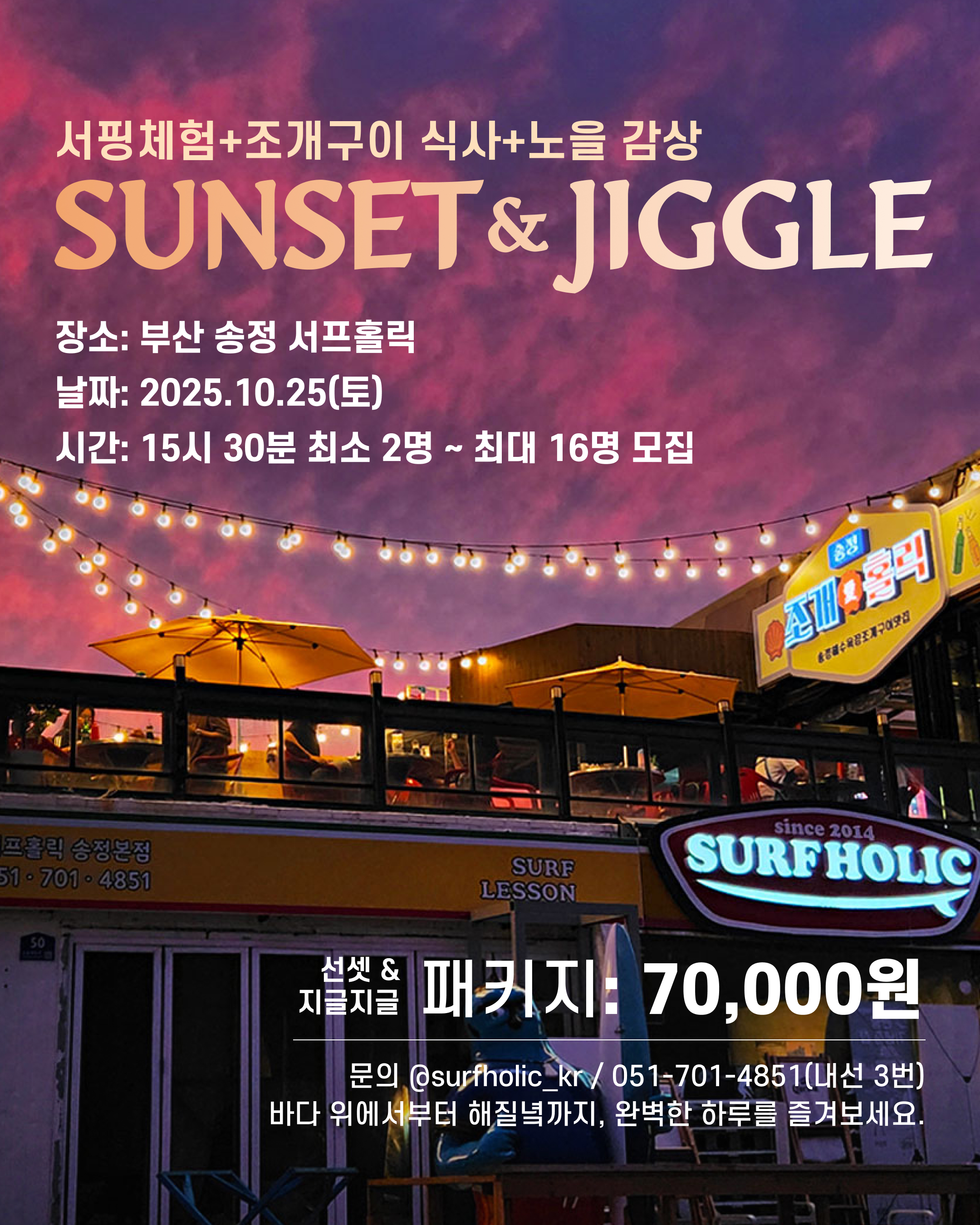 [서프홀릭 x 송정조개홀릭] 단 하루! ‘선셋 & 지글지글 패키지’