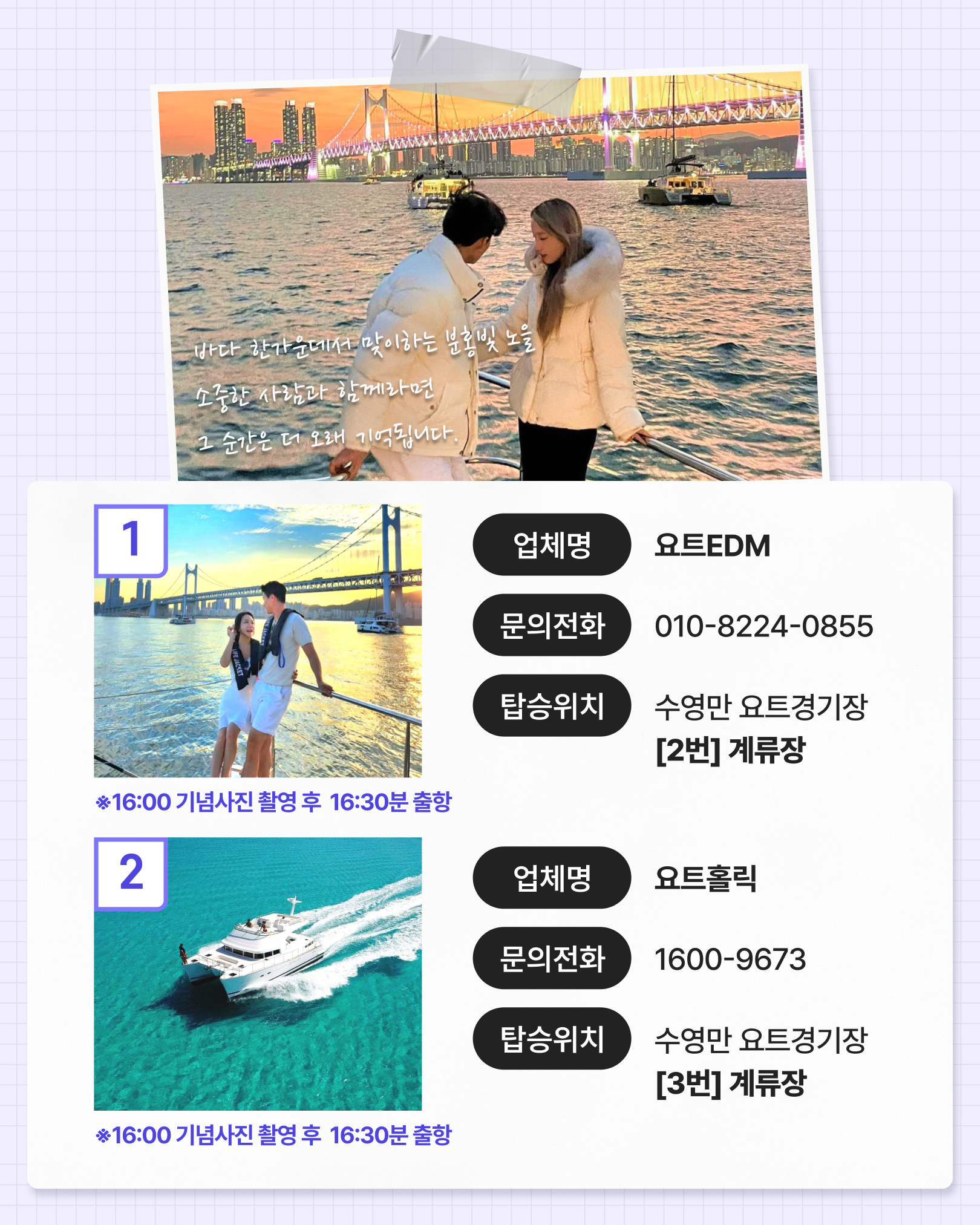 탑승위치 : 수영만 요트경기장 2번 계류장