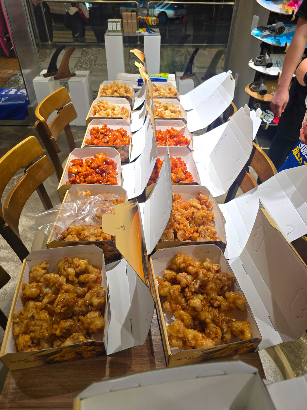 정성스럽게 준비한 단체 주문 세팅 모습입니다.