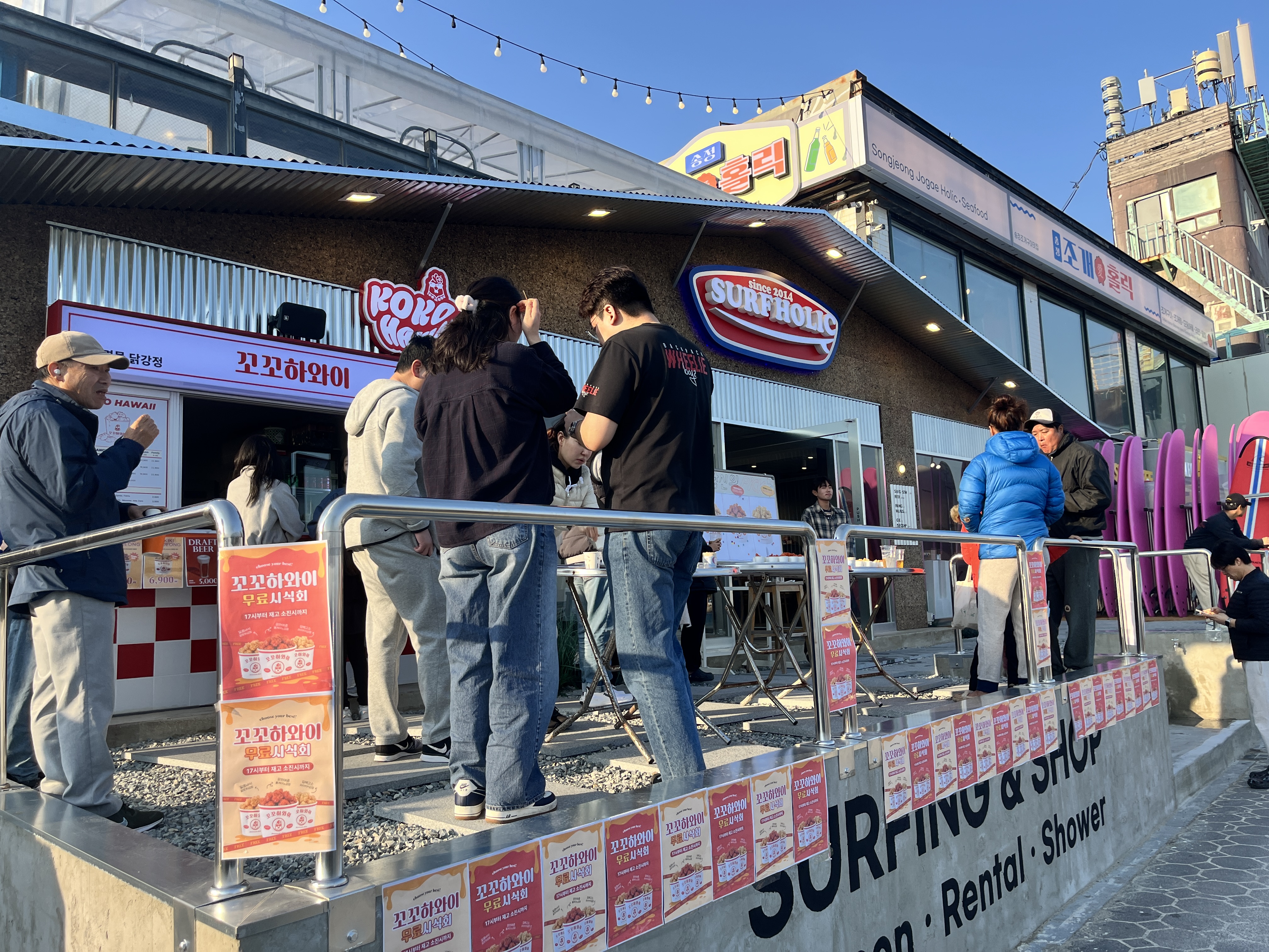 젊음의 열기가 가득한 송정에서, 지난 3월 21일 토요일 오후 5시에 아주 특별한 행사가 열렸답니다. 바로 이번에 새롭게 론칭한 브랜드, 꼬꼬하와이의 닭강정 시식회였는데요! 오늘은 그 뜨거웠던 현장 이야기를 전해드리려고 해요.
