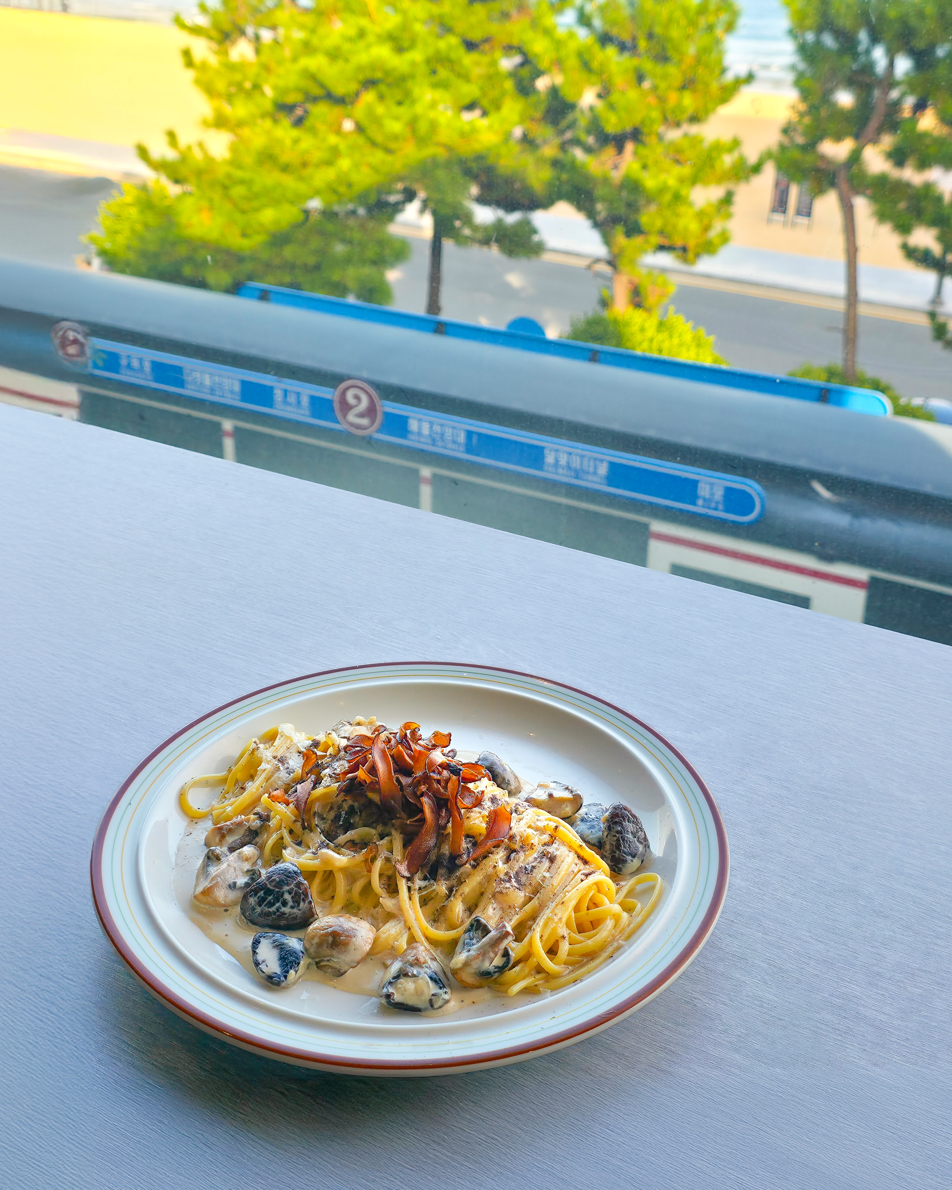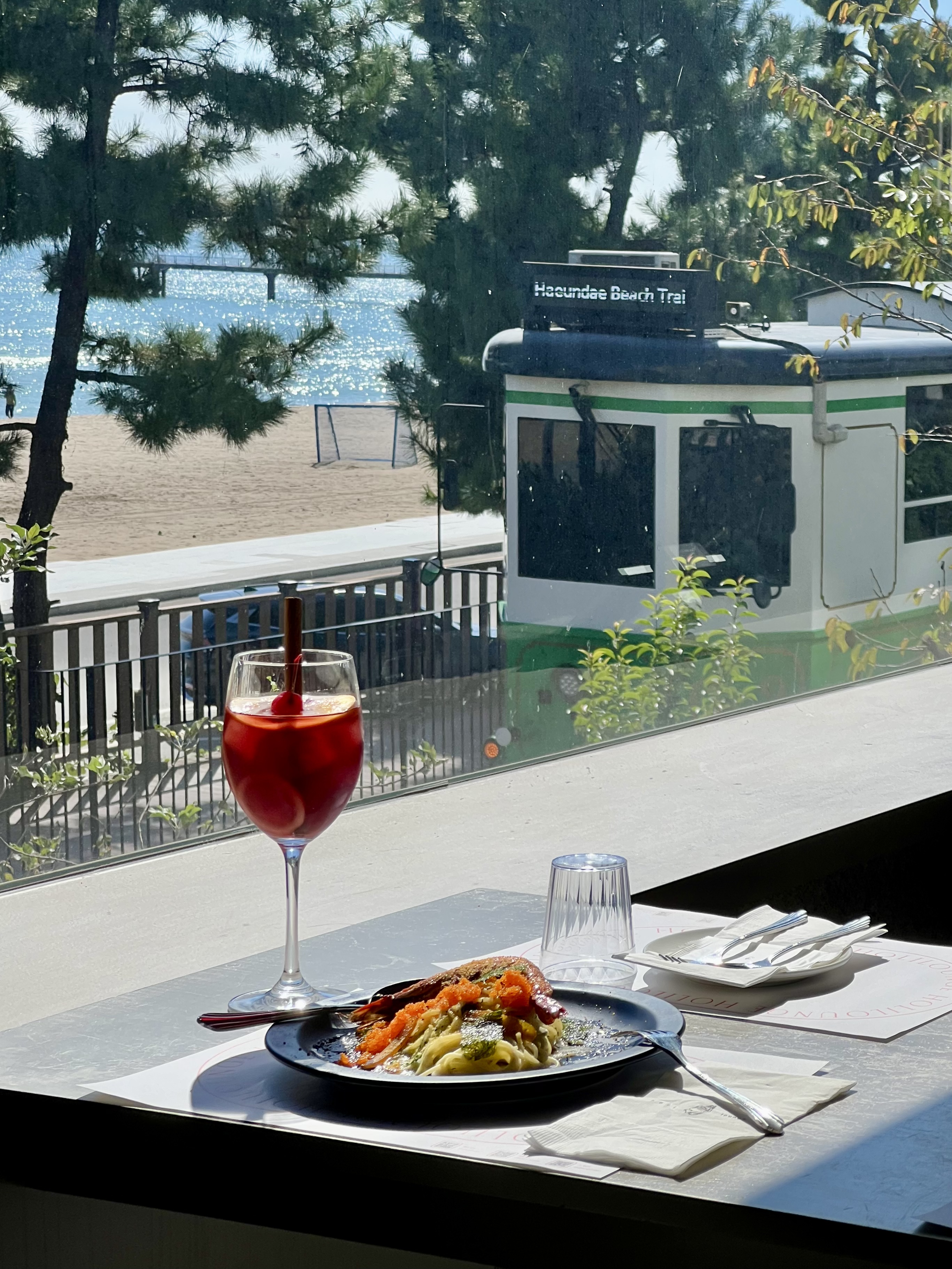 소중한 사람과 함께 아름다운 송정 바다를 바라보며 즐기는 여유로운 식사,