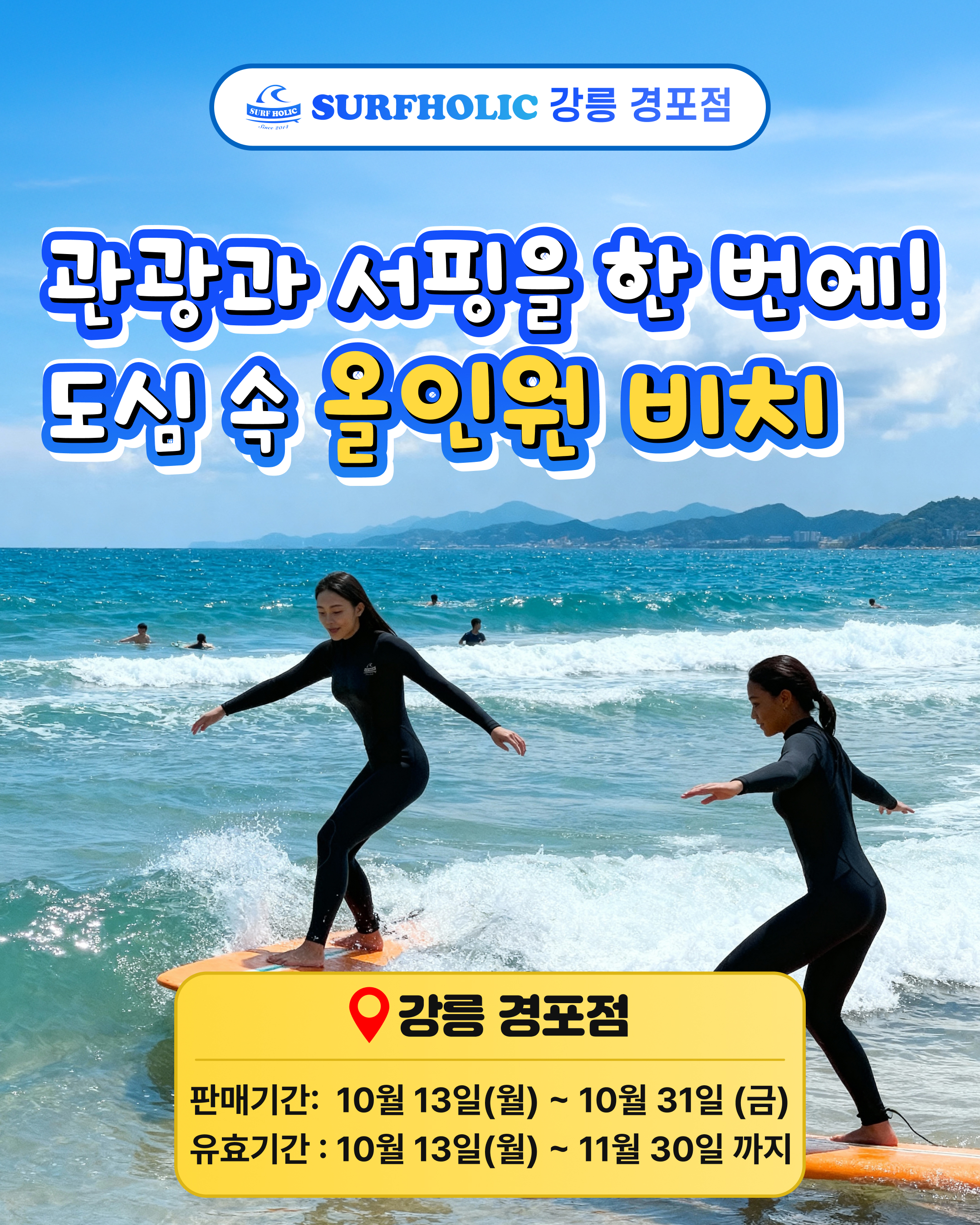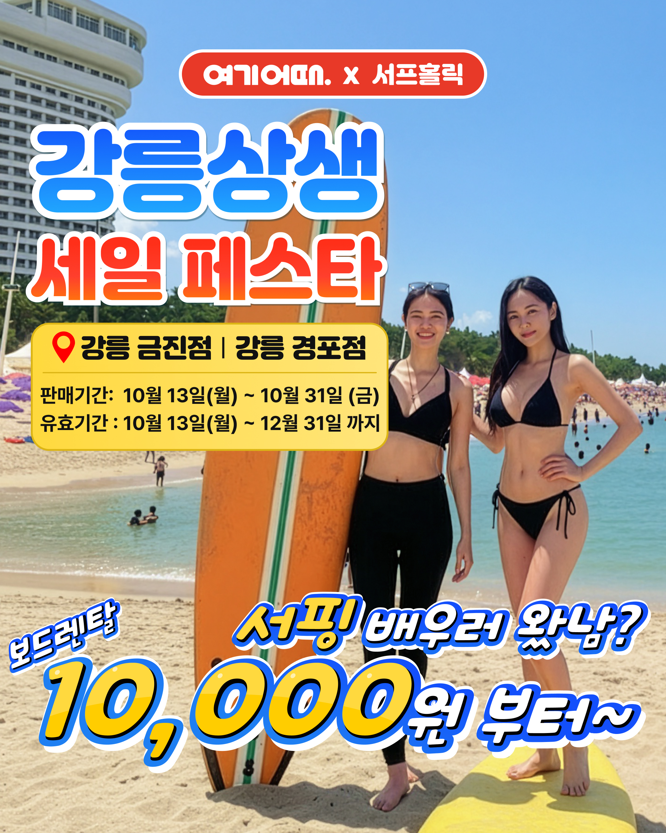 [서프홀릭x여기어때] 강원 상생 세일 페스타 렌탈 / 강습 15,000원 할인 !