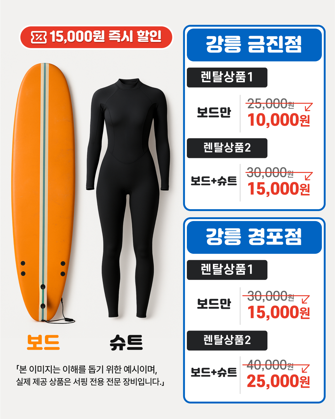 보드+슈트 렌탈 : 15,000원