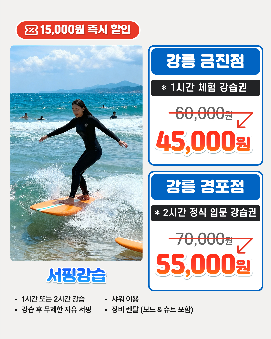서핑 렌탈 / 강습 체험 특가 소식 가져왔어요!