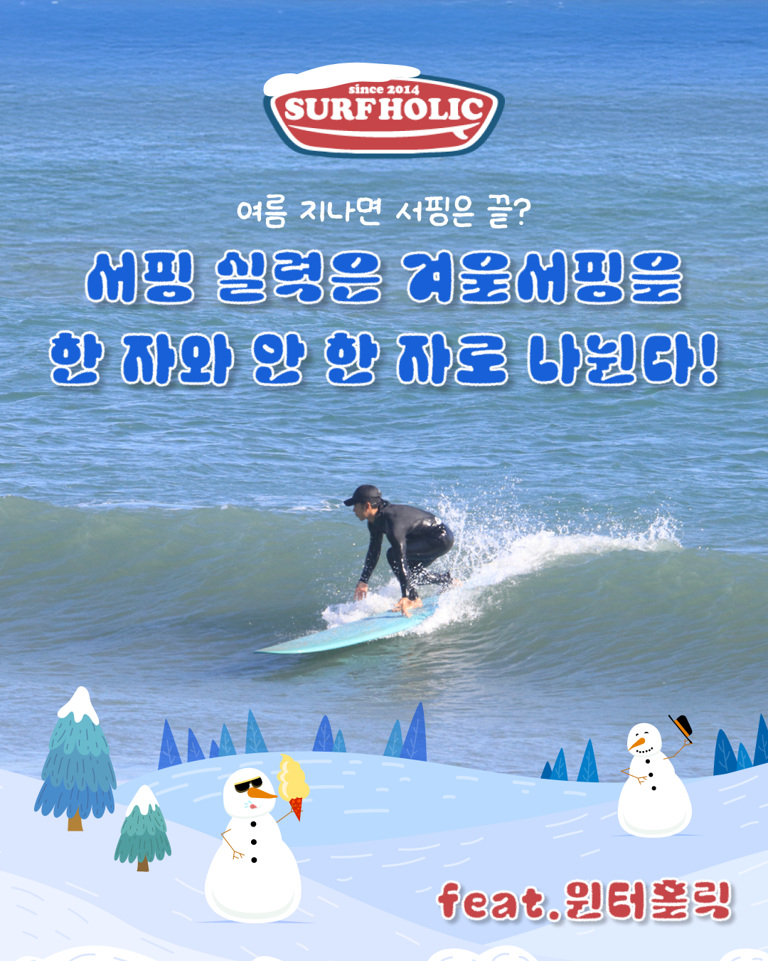 [윈터홀릭 10기 모집] 서프홀릭 겨울 서핑 강습 비기너, 기초반, 중급자반 모집! 단기간 실력 레벨업up!