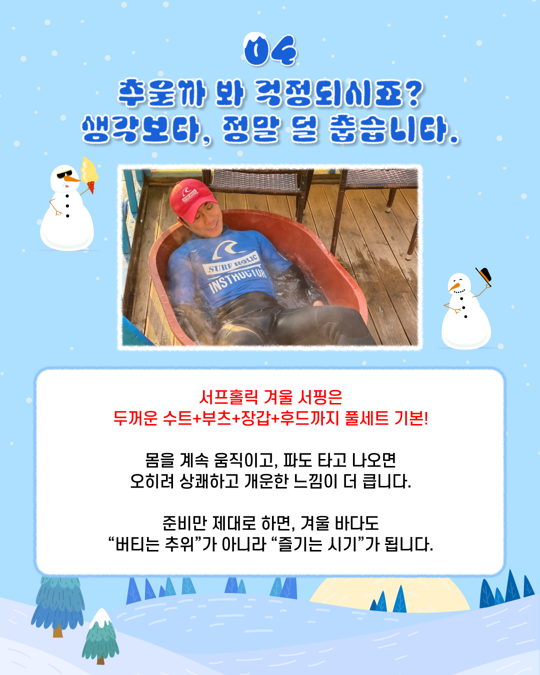 “제대로 된 서핑 입문은 겨울! 제가 옆에서 든든히 함께할게요."