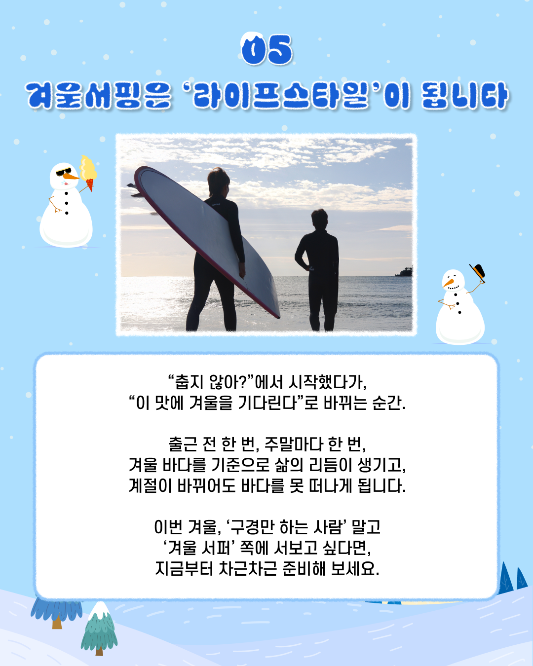 5. 겨울 서핑은 라이프 스타일이 됩니다.