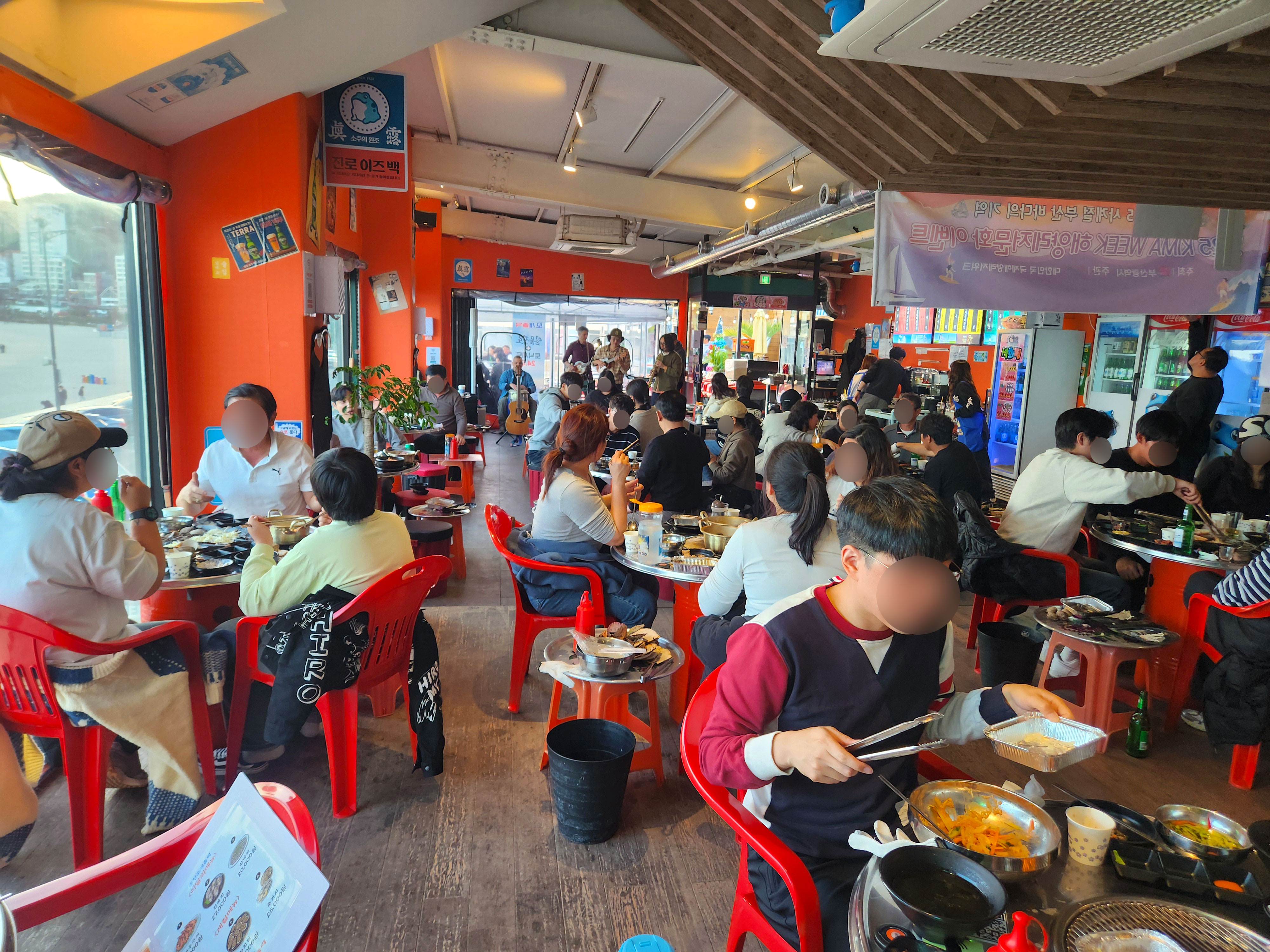 테이블 위에는 따끈한 조개구이와 다양한 메뉴들이 차례로 올라왔습니다.