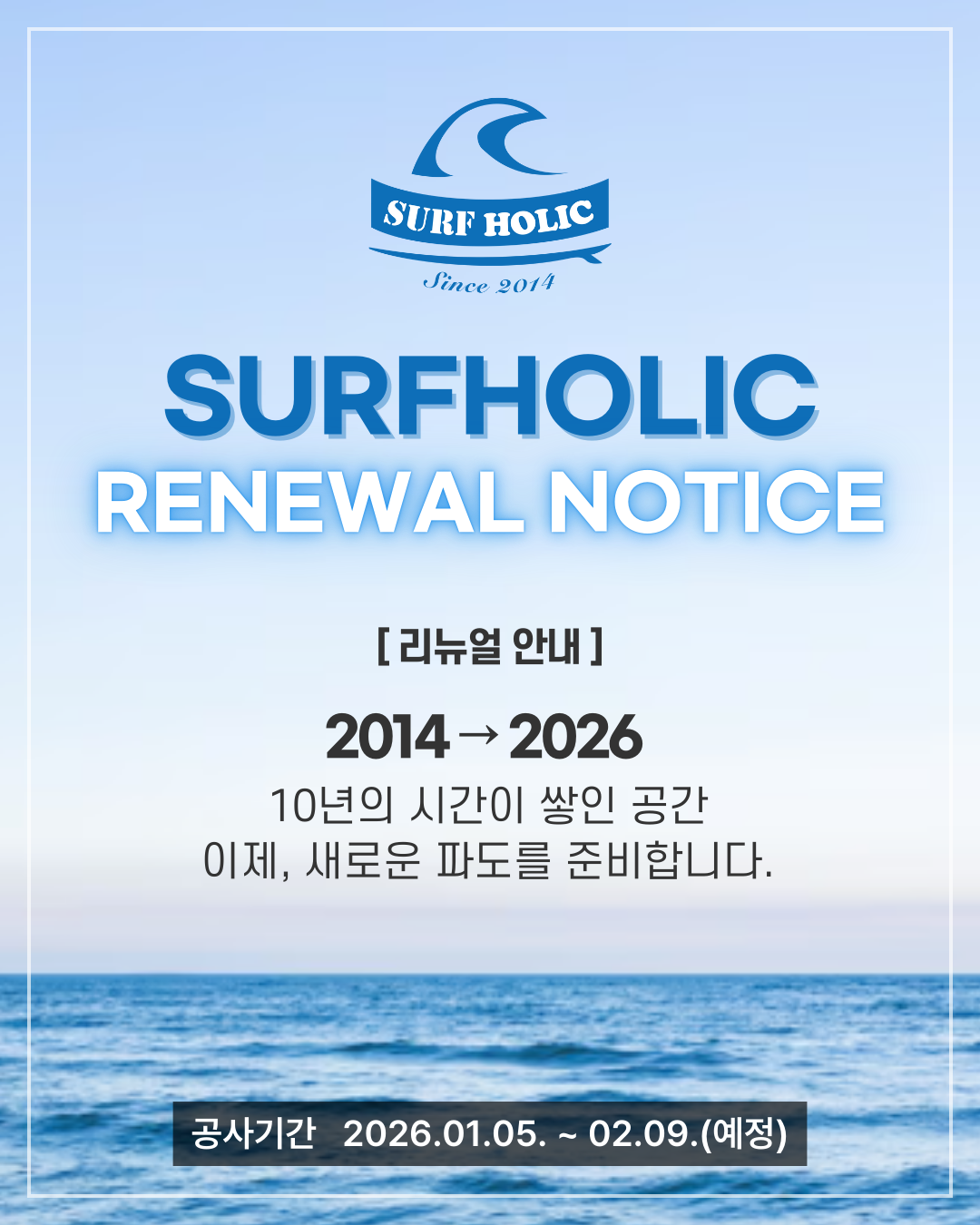 더 좋은 파도, 더 편안한 공간에서 다시 만나요.