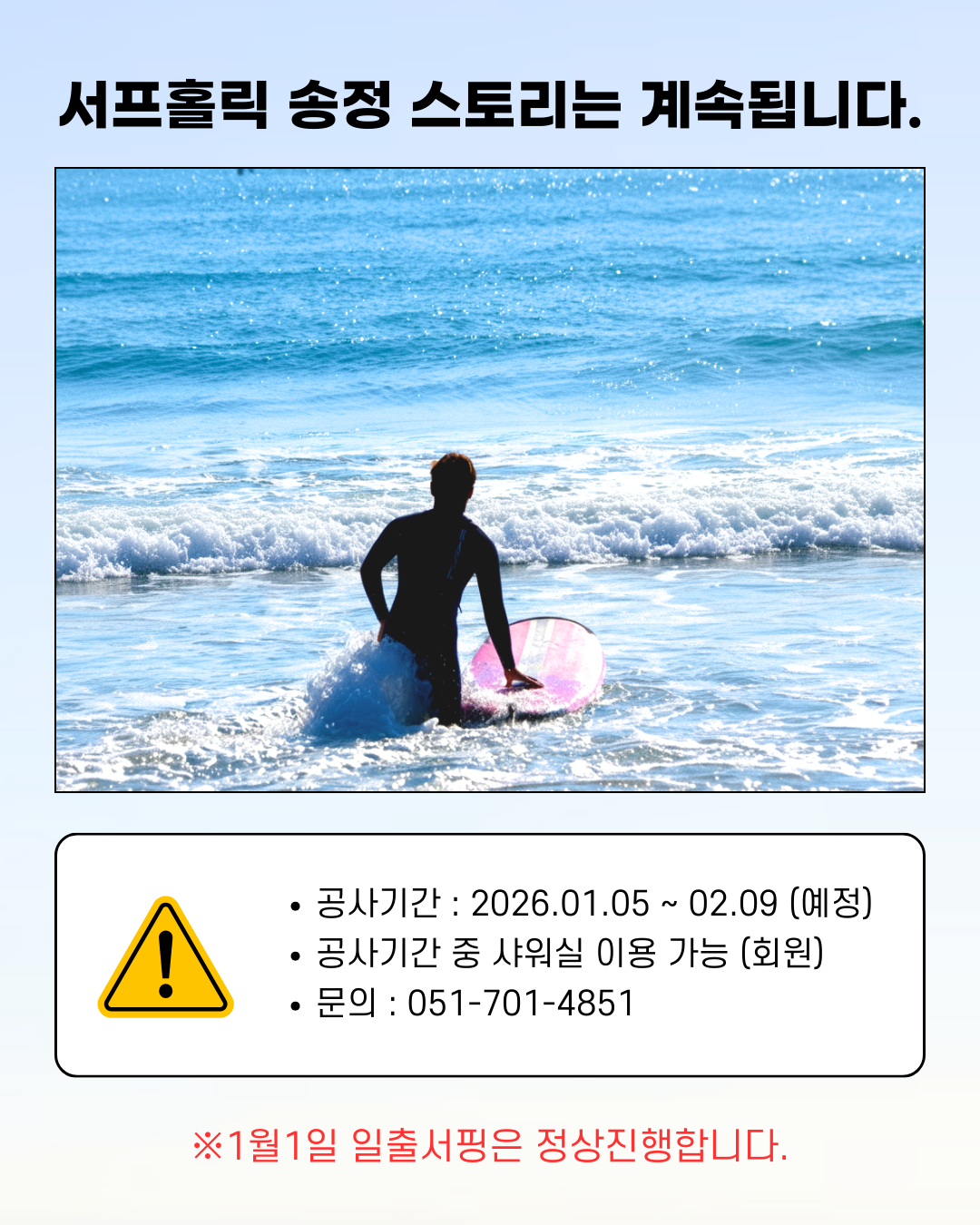 1/1 일출 서핑은 정상 운영됩니다.