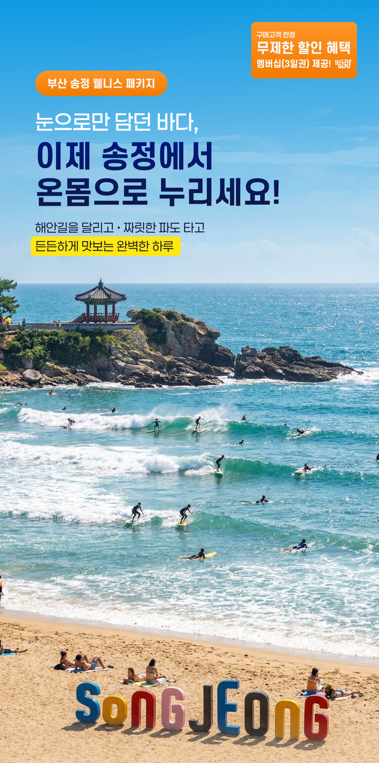 [당일 여행 패키지] 지마켓 바다가는달 부산 송정 웰니스 서핑 체험 + 맛집 여행
