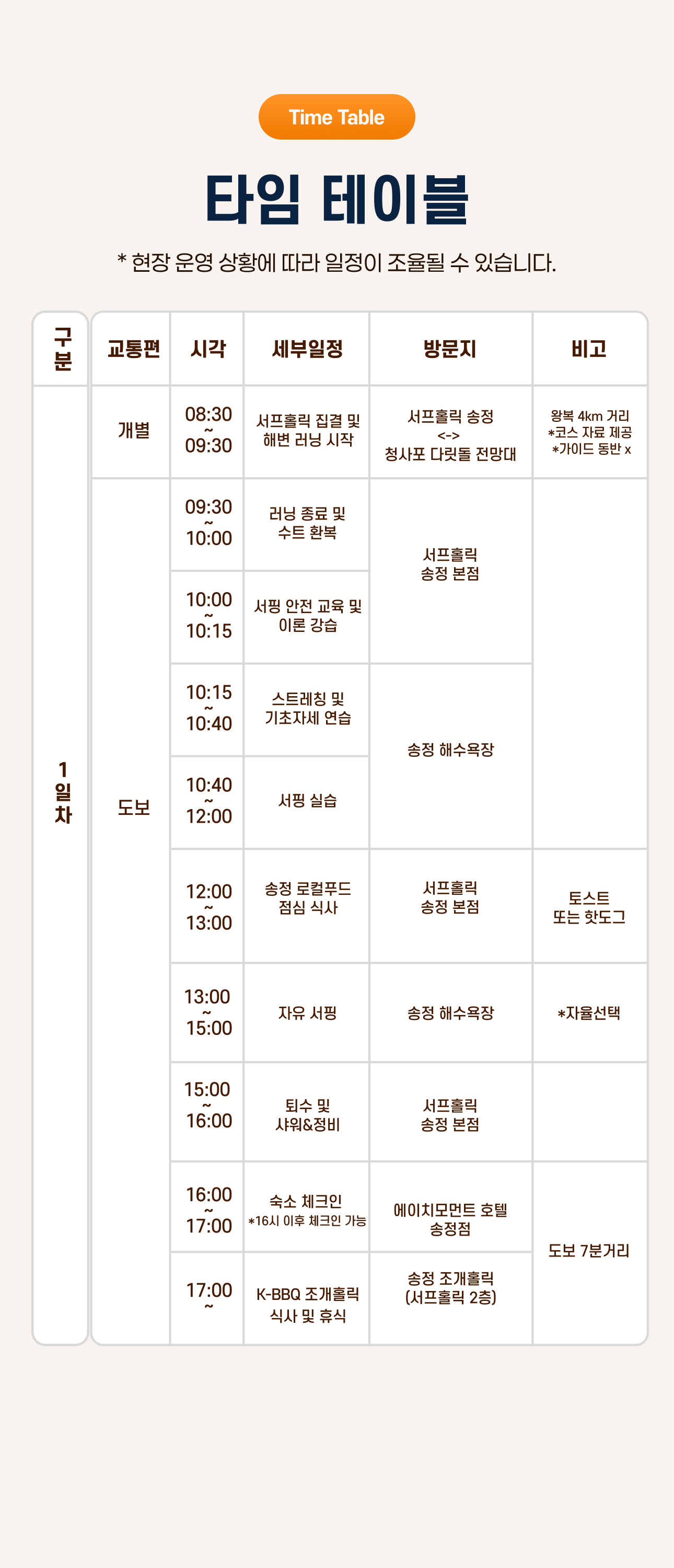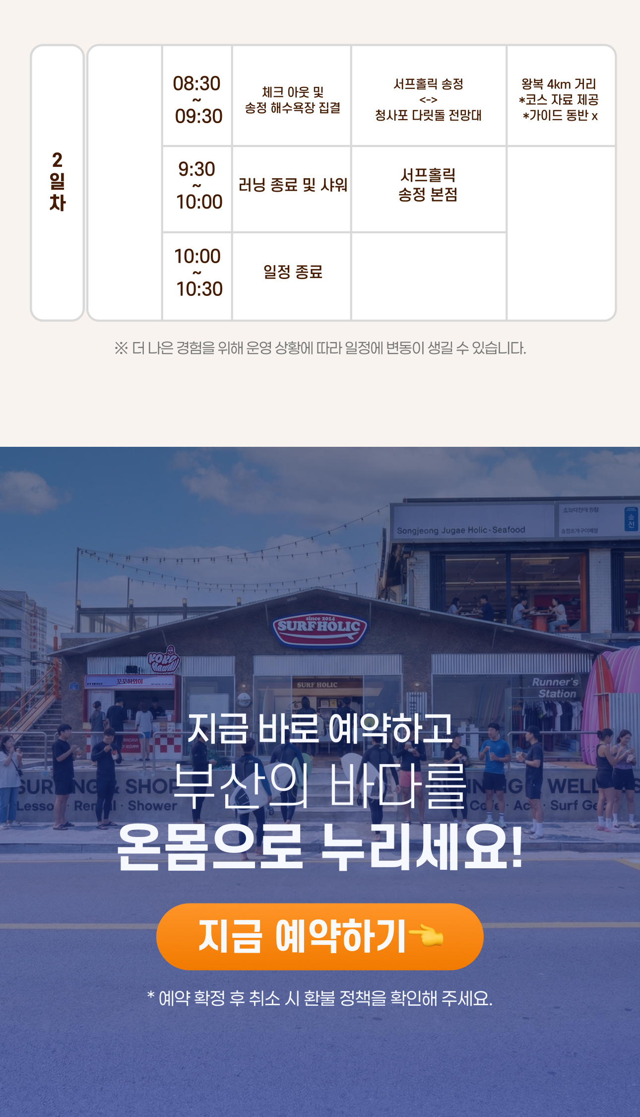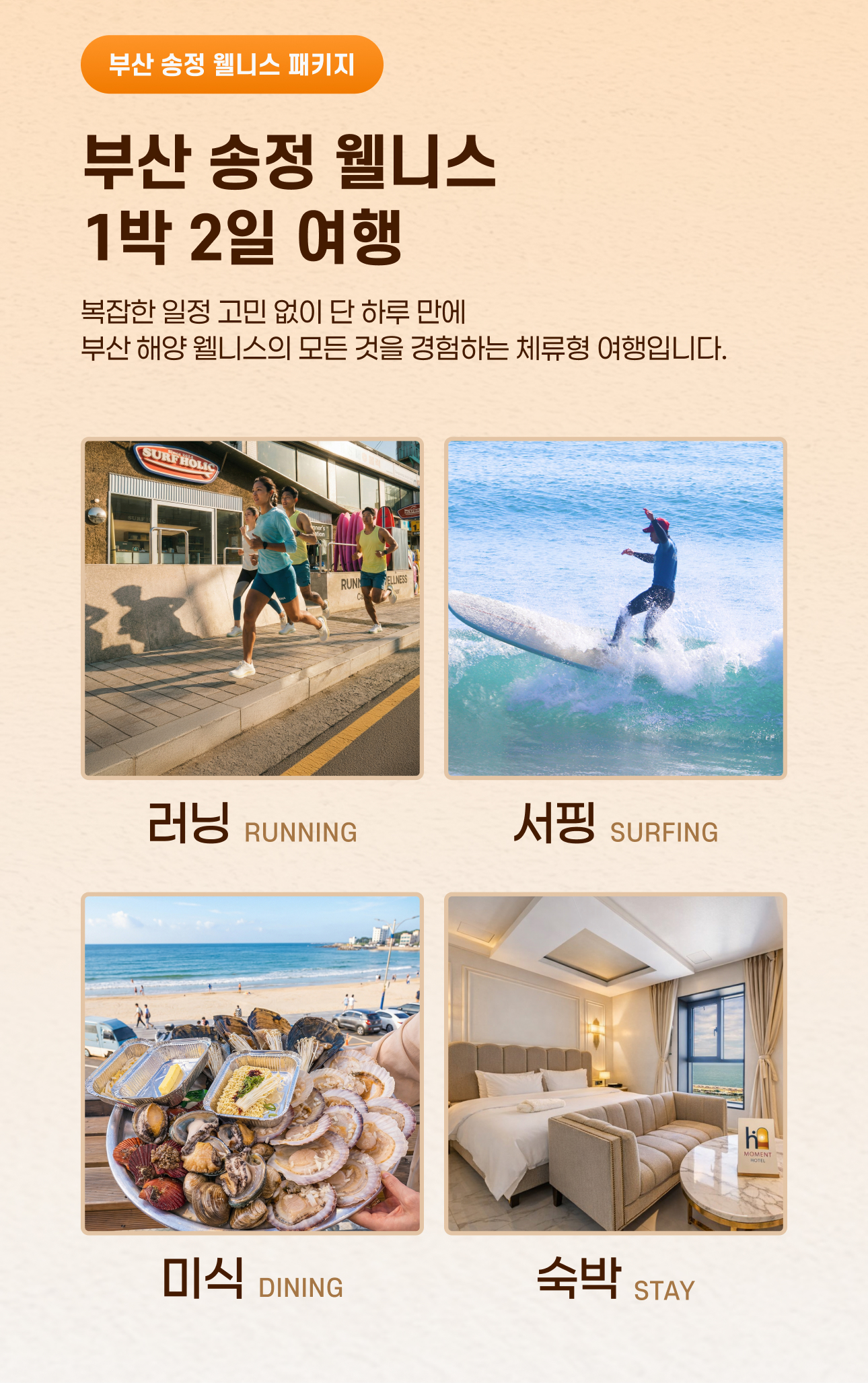 송정 <-> 청사포 러닝 >> 송정 서핑 >> 조개구이 5만원 식사권 >> 숙박