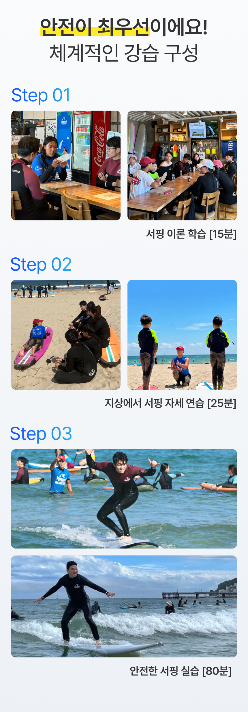 강습 내용 : 이론 + 바다강습 2시간 + 자유무제한 서핑
